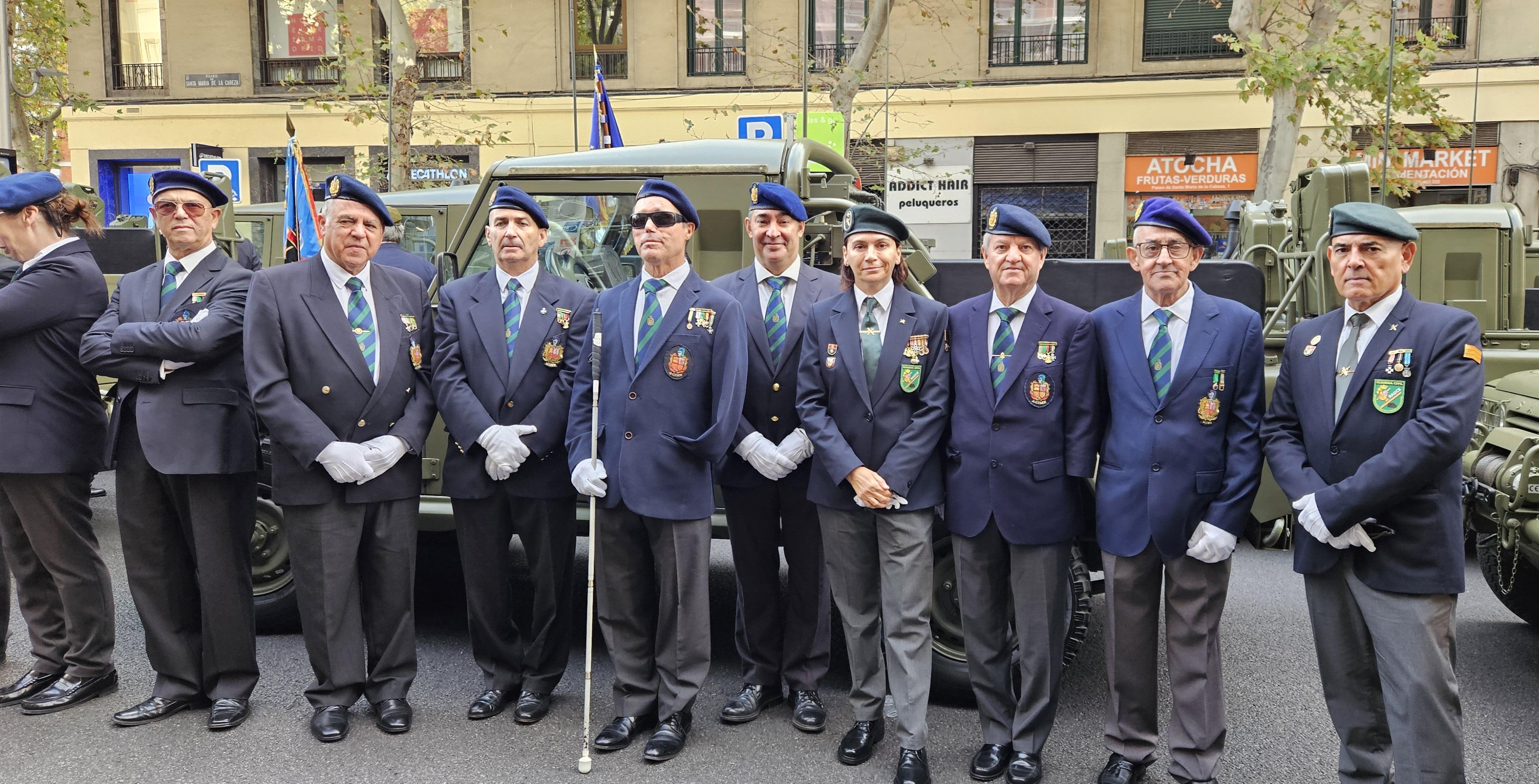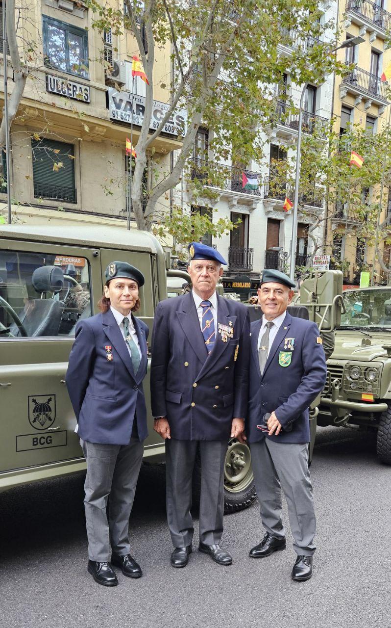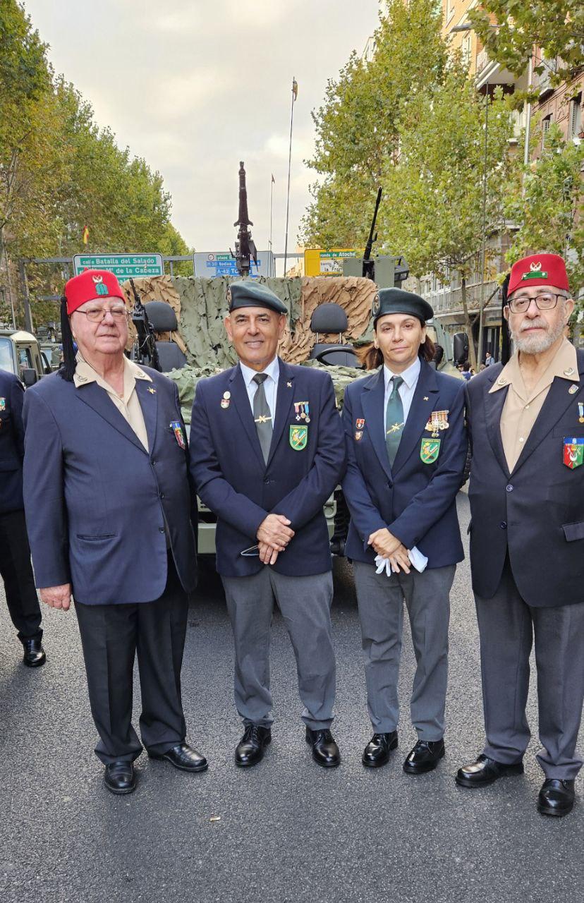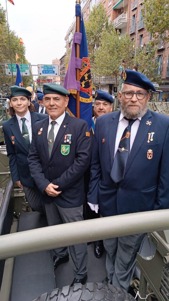 Madrid, 12 de octubre de 2025. La Asociación RAGCE (Retirados Asociados de la Guardia Civil de España) ha vuelto a hacer historia este domingo, 12 de octubre, al participar por primera vez en el Desfile del Día de la Fiesta Nacional en Madrid, junto a los compañeros veteranos de la Real Hermandad de Veteranos de las Fuerzas Armadas y de la Guardia Civil, ACIME, ASEVAUME y otras entidades representativas de diferentes cuerpos y asociaciones de veteranos.